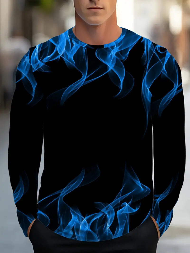 Ignite Your Style – Bold Smoke-Print Long Sleeve Tee for Casual Edge!